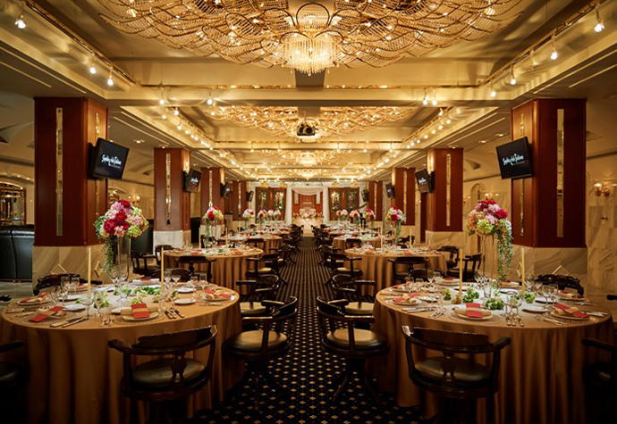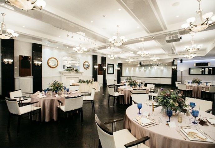 大理石の床が光を映し出す空間は、祝賀・表彰・パーティなど、